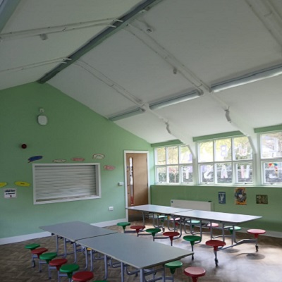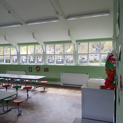 Refurbishment of dilapidated outbuilding to provide kitchen and dining facilities for Ysgol Betws y Coed. The project included a roof replacement, replacement of windows and doors, wall and roof insulation, a full commercial kitchen fit out and replacement of exiting water and electrical services to the building