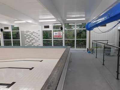 Description Extensive refurbishment of bathing pool changing areas , squash courts and gym areas.