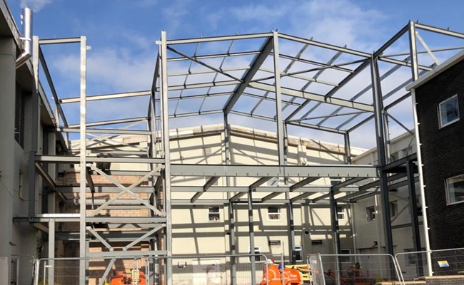 Although this work was phased the majority of the works comprised in the creation of a new link building over a loading bay for HGV deliveries which was carried out for the full 52-week duration of the project. This new building consisted of a large steel frame on top of pile foundations, a under croft second floor dance studio with sprung floor, a steel stair fire escape, and large passenger lift.