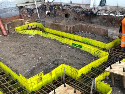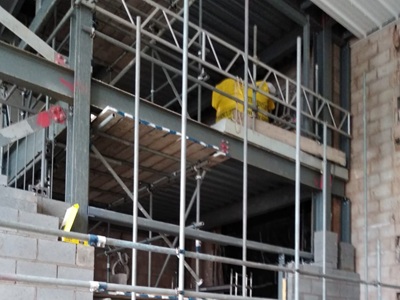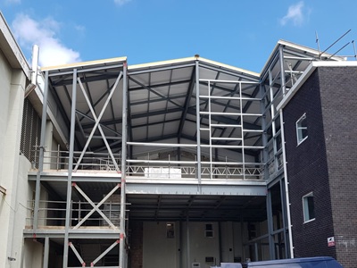 Although this work was phased the majority of the works comprised in the creation of a new link building over a loading bay for HGV deliveries which was carried out for the full 52-week duration of the project. This new building consisted of a large steel frame on top of pile foundations, a under croft second floor dance studio with sprung floor, a steel stair fire escape, and large passenger lift.