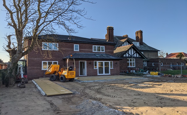 A new build vicarage for the Diocese of Chester. Located near the coast the subsoil was principally sand necessitating the use of a raft foundation.